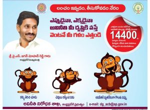 ‘చేయి చేయి కలుపుదాం, అవినీతి భూతాన్ని తరిమేద్దాం’ అంటూ సీఎం జగన్ ఇచ్చిన పిలుపునకు ప్రజల నుంచి భారీ స్పందన కూడా లభిస్తోందట. ఇందుకు సంబంధించి ఏపీలో 14400 నెంబర్ తో కాల్ సెంటర్ ప్రారంభించిన 24 గంటల్లో రికార్డు స్థాయిలో 5,100 కాల్స్ వచ్చాయట. రెవెన్యూ, రిజిస్ట్రేషన్, పంచాయతీరాజ్ విభాగాల్లో లంచం కోసం డిమాండ్ చేస్తున్నట్లు, అవినీతికి పాల్పడుతున్నట్లు ఫిర్యాదుల సారాంశం. ఇక నుంచి మూడు కోతుల బొమ్మల పాత నీతి నినాదాలతోపాటు చెడు విను, చూడు, గొంతు విప్పు’ అనే సరికొత్త రీతి నినాదాలను కూడా ప్రజలు గుర్తుంచుకోవాలి. ఈ తరం విద్యార్థులు కూడా మూడు కోతుల బొమ్మల నీతిని సరికొత్తగా చదువుకోవాలి కూడా. ఎందుకంటే అవినీతి, లంచం అనే పదాలు చెడు అంశాలే మరి. అదిరింది కదూ? ఏపీ సర్కారు యాడ్ క్రియేటివిటీ!