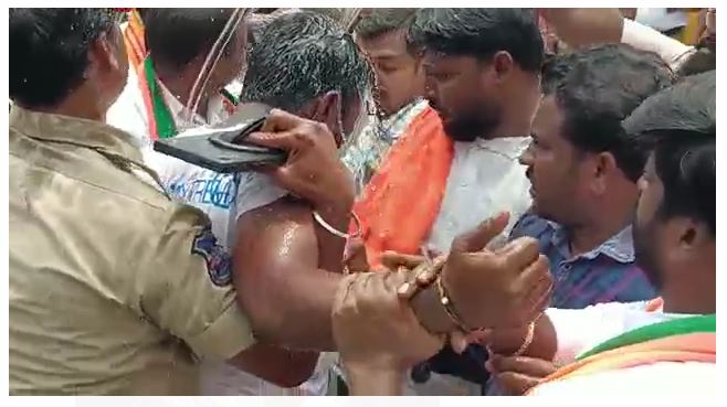 ఈ నేపథ్యంలోనే బీజేపీ నాయకులు, కార్యకర్తలు జెడ్పీ సెంటర్ వద్ద మంత్రి అజయ్ కుమార్ దిష్టిబొమ్మ దహనం యత్నానికి నేడు ప్రయత్నించారు. అయితే బీజేపీ కేడర్ చర్యను పోలీసులు అడ్డుకున్నారు. దీంతో మనస్తాపానికి గురైన బీజేవైఎం జిల్లా అధ్యక్షుడు అనంతుల ఉపేందర్ తన ఒంటిపై పెట్రోల్ పోసుకుని ఆత్మహత్యాయత్నానికి పాల్పడ్డారు. అప్రమత్తమైన అక్కడే గల బీజేపీ నాయకులు, కార్యకర్తలు ఉపేందర్ ను అడ్డుకుని అతని ఒంటిపై నీళ్లు చల్లి నిలువరించారు. ఈ ఘటన ఖమ్మంలో తీవ్ర కలకలం కలిగించింది.