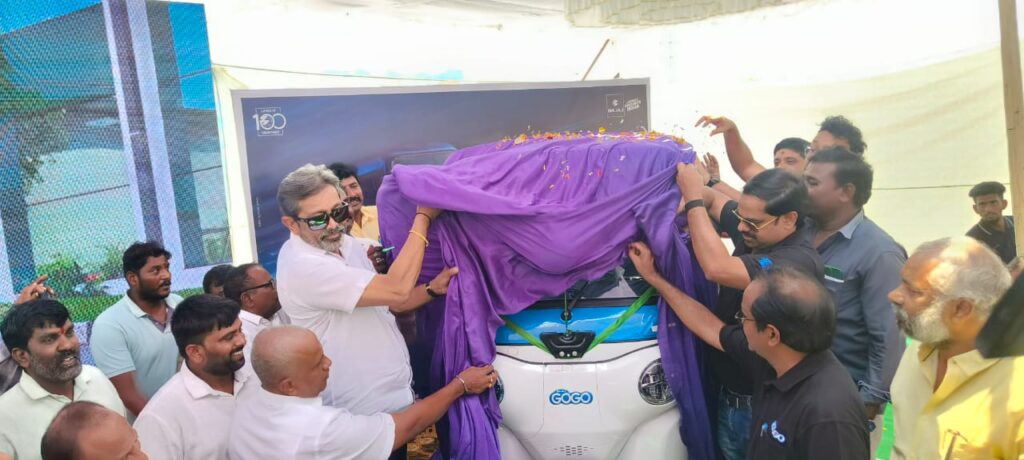 బజాజ్ గోగో ఎలక్ట్రిక్ ఆటోను ఆవిష్కరిస్తున్న వీవీసీ గ్రూపు సంస్థల అధినేత రాజేంద్ర ప్రసాద్