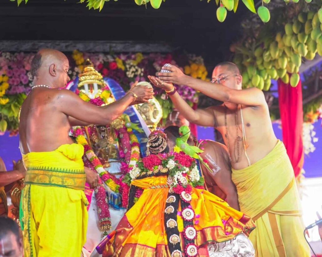 మిథిలా స్టేడియంలో శ్రీ రామచంద్రస్వామి, సీతమ్మ వారికి పూజా కార్యక్రమం, అలంకరణ, తదితర కార్యక్రమాలు నిర్వహించి పెళ్లి కొనసాగించారు. శాస్త్రోక్తంగా నిర్వహించిన పూజా కార్యక్రమాలు, వేద మంత్రోచ్చారణల మధ్య జరిగిన కళ్యాణ మహోత్సవం ఆధ్యాత్మిక వాతావరణాన్ని సృష్టించింది. ఆలయ అర్చకులు సంప్రదాయబద్ధంగా అన్ని కార్యక్రమాలను నిర్వహించారు.