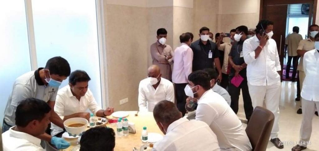 ఫొటోను నిశితంగా గమనించండి. టీఆర్ఎస్ వర్కింగ్ ప్రెసిడెంట్, రాష్ట్ర ఐటీ, మున్సిపల్ శాఖ మంత్రి కేటీఆర్ చెవిలో గుసగుసలాడుతున్న ఈ వ్యక్తి ఎవరో తెలుసా? మాస్క్ ఉండడం వల్ల గుర్తు పట్టలేకపోవచ్చు. ఆయన మరెవరో కాదు… టీపీసీసీ చీఫ్ ఉత్తమ్ కుమార్ రెడ్డి సమీప బంధువు, వరుసకు ఉత్తమ్ కు సోదరుడు, హుజూరాబాద్ నియోజకవర్గ కాంగ్రెస్ ఇంచార్జ్, గత ఎన్నికల్లో ఈటెల రాజేందర్ పై కాంగ్రెస్ అభ్యర్థిగా పోటీ చేసిన నాయకుడు. పార్టీపరంగా ఇన్ని అర్హతలు గల కౌశిక్ రెడ్డి టీఆర్ఎస్ వర్కింగ్ ప్రెసిడెంట్ కేటీఆర్ చెవిలో ఏదో గుసగుసలాడుతున్న ఈ ఫొటో సోషల్ మీడియాలో వైరల్ గా మారడమే అసలు విశేషం. కౌశిక్ రెడ్డి టీఆర్ఎస్ లో చేరబోతున్నారంటూ కొందరు ఊదరగొడుతున్నారు కూడా. కేవలం కారు వద్ద కేటీఆర్ చెవిలో ఏదో చెబుతున్నట్లు కనిపిస్తున్న ఈ ఫొటో మాత్రమే కాదు, కేటీఆర్ భోజనం చేస్తుండగా అదే టేబుల్ వద్ద గల కుర్చీలో కూర్చున్న కౌశిక్ రెడ్డి ఇక్కడ కూడా ఏదో చెబుతున్నట్లు కనిపిస్తున్నది. ఇదే చిత్రంలో ఎంపీ జోగినపల్లి సంతోష్ కుమార్ కూడా ఉన్నారు.
