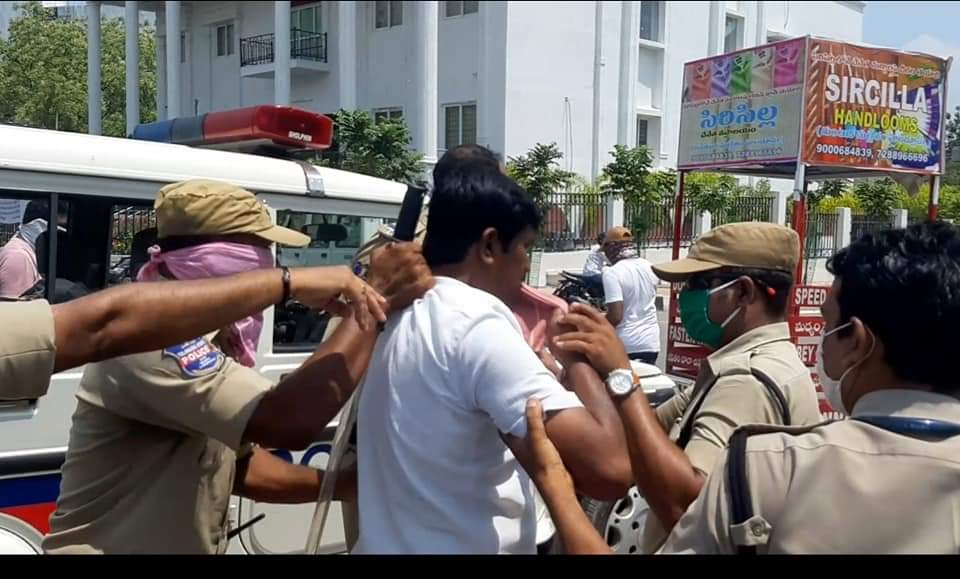 ఈ ఫొటో గురించి కూడా తెలుసుకుందాం. ఇతని పేరు గుగ్గిళ్ల శ్రీకాంత్ గౌడ్. తెలంగాణాలోని రాజన్న సిరిసిల్ల జిల్లా తంగళ్లపల్లి మండల కాంగ్రెస్ నేత. కరోనా కట్టడికి ప్రభుత్వం అమలు చేస్తున్న లాక్ డౌన్ ను ఉల్లంఘించి రోడ్డు మీద స్వైర విహారానికి వచ్చాడు. ప్రశ్నించిన పోలీసులపై తిరుగుబాటు చేశాడు. ‘నేను లీడర్ ను తెలుసా? గౌరవించడం తెలుసుకోండి’ అని పేట్రేగిపోయినట్లు వార్తలు వచ్చాయి. ఘటనపై ఆగ్రహించిన సిరిసిల్ల కలెక్టర్ ఆదేశంతో అరెస్టయి ప్రస్తుతం పోలీస్ స్టేషన్లో కూర్చున్నాడు.