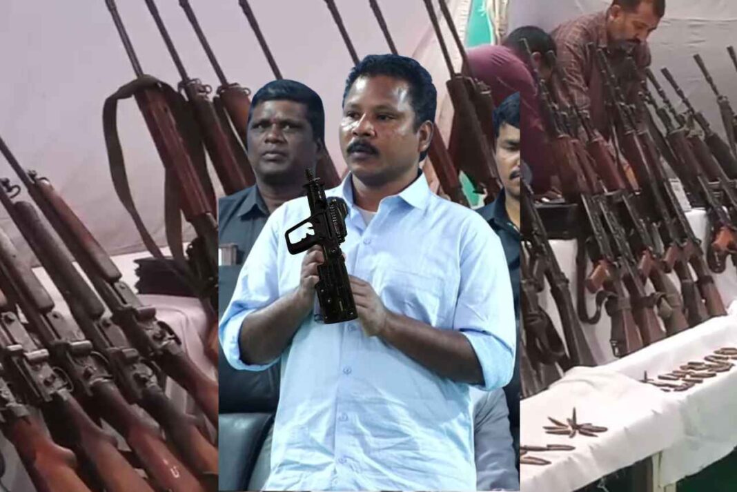 ఈ కథనంలో ప్రస్తావిస్తున్నది నిన్న వివరించిన ఇజ్రాయెల్ మేడ్ టావర్ (TAVOR), గురించో, అమెరికాలో తయారైన ‘కోల్ట్’ (COLT) వంటి అధునాతన తుపాకుల గురించి కానేకాదు. నిన్నటి దేవా టీం లొంగుబాటు ‘సీన్’ను మరోసారి ప్రత్యేకంగా గమనించండి. దేవా, కంకణాల రాజిరెడ్డిలు సహా డీజీపీ శివధర్ రెడ్డి ముందు లొంగిపోయిన నక్సల్స్ సంఖ్య ఇరవై మాత్రమే. కానీ పోలీసులకు అప్పగించిన తుపాకుల సంఖ్య ఎంతో గమనించారా? అక్షరాలా నలభై ఎనిమిది. ఇందులో రెండు LMG, ఒక్కోటి చొప్పున అమెరికా, ఇజ్రాయెల్ లో తయారైన Colt, Tavor రైఫిల్స్, ఎనిమిది AK-47, పది INSAS, ఎనిమిది SLR, నాలుగు BGL, పదకొండు సింగిల్ షాట్స్ తుపాకులు ఉన్నాయి. ఇవిగాక తుపాకీ తూటాలు, ఇతరత్రా ఆయుధ సామాగ్రి కూడా ఉంది.