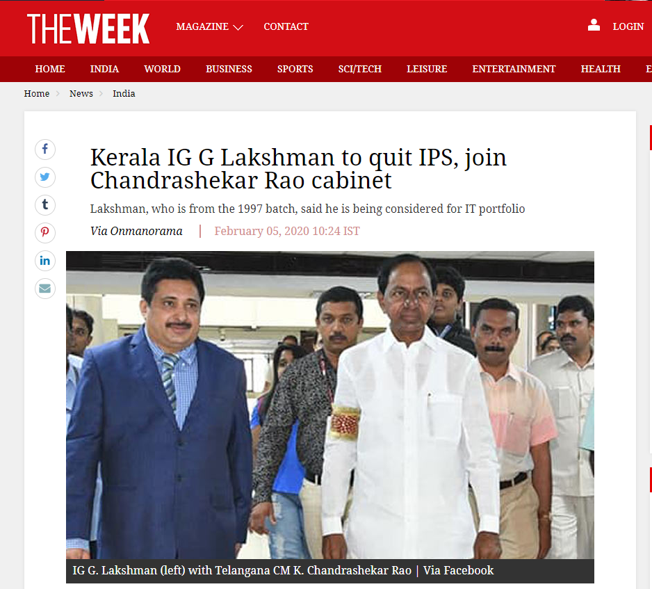 కేసీఆర్ కేబినెట్లోకి కేరళ ఐజీ? ‘ది వీక్’ సంచలన కథనం!