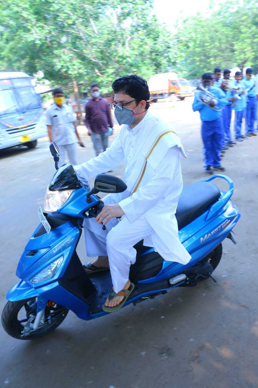 తన నివాసం నుంచి ద్విచక్ర వాహనాన్ని స్వయంగా నడుపుకుంటూ వచ్చి కమిషనర్ ఆయుధ పూజలో పాల్గొన్నారు. ఈ సందర్భంగా పురోహితుడు తలకు చుట్టిన కండువాను ఆయుధ పూజ అనంతరం తన భుజంపై వేసుకుని తఫ్సీర్ ఇక్బాల్ తిరిగి వెళ్లడం విశేషం. అదేవిధంగా ఆయుధ పూజ సందర్భంగా కమిషనర్ తఫ్సీర్ ఇక్బాల్ స్వయంగా ఏకే-47 ఆయుధాన్ని పేల్చడం మరో ప్రత్యేకత.