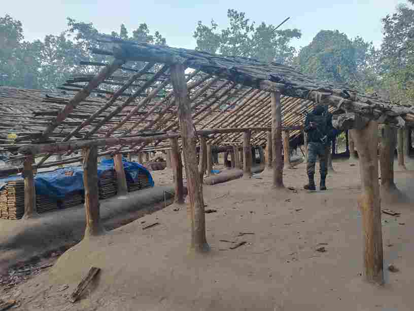 బీజాపూర్ జిల్లా భట్టిగూడ అడవుల్లో నక్సల్స్ నిర్మించిన శిక్షణా శిబిరం