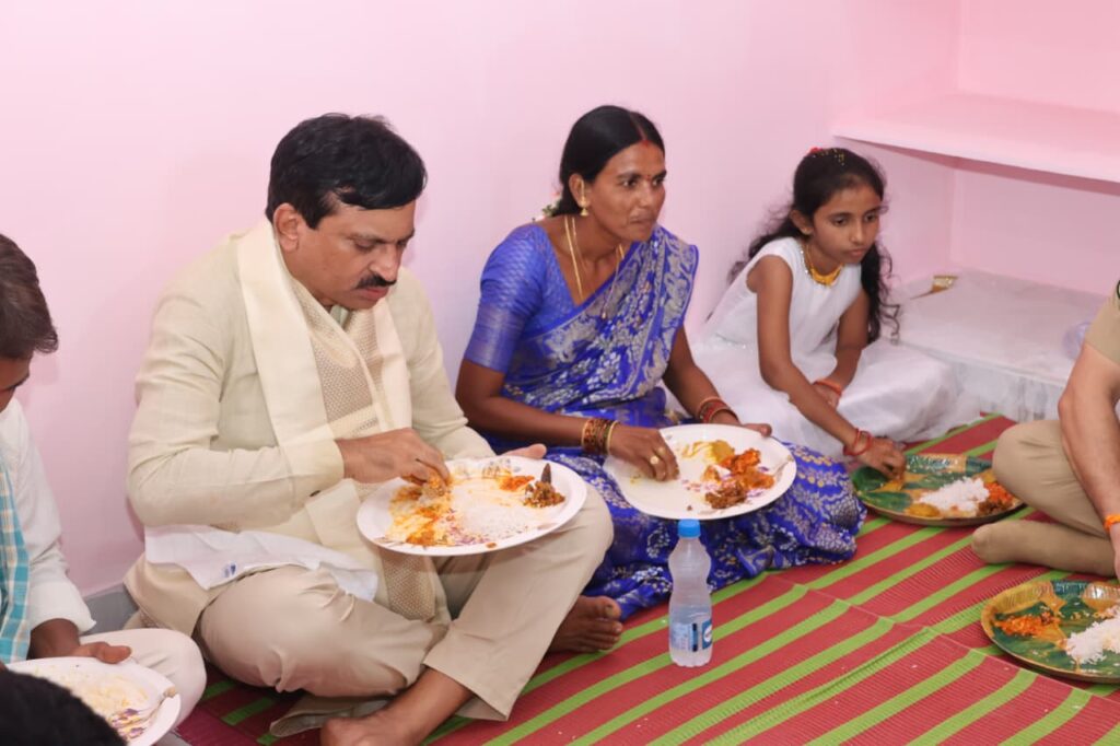 ఇందిరమ్మ ఇండ్లను ప్రారంభించిన మంత్రి: పేదల ఆత్మగౌరవానికి చిహ్నంగా రాష్ట్ర ప్రభుత్వంచే ఇందిరమ్మ ఇండ్ల నిర్మాణం చేపట్టినట్లు మంత్రి పొంగులేటి శ్రీనివాసరెడ్డి అన్నారు. ఖమ్మం రూరల్ మండలంలో పర్యటించి పూర్తయిన ఇందిరమ్మ ఇళ్లను ప్రారంభించి, పలు అభివృద్ధి పనులకు శంకుస్థాపన చేశారు. ఆరెంపుల గ్రామంలో నిర్మించి పూర్తి చేసిన జెల్ల విజయ కుమారి, చెన్నబోయిన నరేష్, షేక్ నాగుల్ పాషా, చిర్ర రాజ్యం, సమర్థపు మమత, షేక్ రంజాన్ పాషా లకు చెందిన ఇందిరమ్మ ఇళ్లను రిబ్బన్ కట్ చేసి ప్రారంభించి లబ్ధిదారులతో కలిసి గృహ ప్రవేశ కార్యక్రమంలో పాల్గొని, ఇందిరమ్మ ఇండ్ల లబ్ధిదారులు చిర్ర రాజ్యం ఇంట్లో మంత్రితోపాటు, కలెక్టర్ అనుదీప్, పోలీస్ కమిషనర్ సునీల్ దత్ లు భోజనం చేశారు.