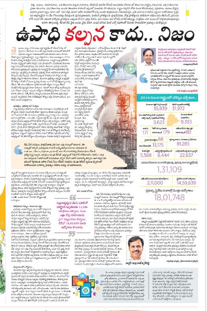 ‘‘తెలంగాణ రాష్ట్రం ఇప్పుడు పెట్టుబడులకు గమ్యస్థానంగా మారింది. జాతీయ, అంతర్జాతీయ కంపెనీలు మన రాష్ట్రంలో ఉత్పత్తులను, కార్యకలాపాలను నిర్వహిస్తుండటంతో ఇక్కడ యువతకు ఉపాధి అవకాశాలు పెరిగాయి. తెలంగాణలో 24 గంటలు నాణ్యమైన కరంటు లభ్యత, సమశీతోష్ణ వాతావరణం, కావాల్సినంత భూమి, అద్భుతమైన శాంతిభద్రతల వ్యవస్థ వంటి మౌలిక వసతులు ఇందుకు కారణాలు. ఇలా లభించే ఉపాధి అవకాశాలనూ సర్కారు కల్పించిన అవకాశాలుగానే లెక్కించాల్సి ఉంటుంది. ఐటీ, ఐటీ అనుబంధం, ఇతర రంగాల పరిశ్రమలు రాష్ట్రంలో కార్యకలాపాలు నిర్వహించడంతో 2014 తర్వాత ఏకంగా 16,70,639 మంది ఉద్యోగాలు పొందారు. తెలంగాణ రాష్ట్ర ఏర్పాటు తర్వాత అనేక సంస్థలు మన రాష్ట్రానికి వచ్చాయి. స్వీడన్కు చెందిన ఐకియా తమ శాఖను హైదరాబాద్లో ఏర్పాటు చేసింది. రూ.900 కోట్లతో మెదక్ జిల్లాలో ఎంఆర్ఎఫ్ లిమిటెడ్ తమ కార్యకలాపాలను విస్తరించింది. వాల్ మార్ట్ సుమారు రూ.750 కోట్లతో తమ శాఖను ప్రారంభించింది. ఫ్లిప్కార్ట్ తమ అతిపెద్ద ఫుల్ఫిల్మెంట్ను ప్రారంభించింది. మొబైలు ఫోన్ తయారీదారు వన్ ప్లస్ పరిశోధనా కేంద్రాన్ని ప్రారంభించింది. ఫెర్రింగ్ ల్యాబోరేటరీస్ జీనోమ్ వ్యాలీలో రూ.235 కోట్లతో కార్యకలాపాలు మొదలుపెట్టింది. నోవార్టీస్ తమ నాలెడ్జ్ సెంటర్ను హైదరాబాదులో ఏర్పాటు చేసింది. పరిశోధన, అభివృద్ధి సంస్థలు, అంకుర పరిశ్రమల కోసం ఎంఎం పార్క్ రూ.వెయ్యి కోట్లతో రెండో దశ ఐటీ హబ్ను 20 లక్షల చదరపు అడుగుల విస్తీర్ణంలో సిద్ధం చేసింది. బోయింగ్, టాటా అడ్వాన్స్డ్ సిస్టమ్స్ లిమిటెడ్ ఉమ్మడిగా హెలికాప్టర్ పైభాగాల తయారీ కర్మాగారాన్ని స్థాపించాయి. కల్యాణి రాఫెల్ అడ్వాన్స్డ్ సిస్టమ్ క్షిపణి ఉప-వ్యవస్థ తయారీ యూనిట్ను ప్రారంభించింది. మెడ్ ట్రానిక్ సంస్థ రూ.1200 కోట్లతో పరిశోధన, అభివృద్ధి కేంద్రాన్ని ఏర్పాటుచేసింది. 19 వేల ఎకరాల విస్తీర్ణంలో ఉన్న ఫార్మా సిటీ ప్రపంచపు అతిపెద్ద సమీకృత ఫార్మా వ్యవస్థ. రూ.70వేల కోట్ల పెట్టుబడులు, 5,60,000 మందికి ఉద్యోగావకాశాలు ఉన్నాయి. భారతదేశపు మొదటి, అతిపెద్ద జీవశాస్త్ర ఉత్పత్తుల తయారీ సముదాయంగా జీనోమ్ వ్యాలీ ఉంది. సుమారు 150 సంస్థలు, 10 వేల ఉద్యోగులతో నడుస్తున్నది. ప్రసిద్ధ వ్యాక్సిన్, పరిశోధన సంస్థలు ఇక్కడ పనిచేస్తున్నాయి. వీటిలో మన యువత ఉద్యోగాలు పొందారు.’’