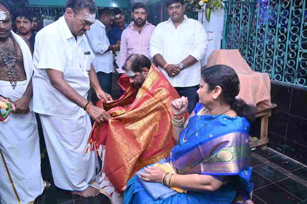 మహా శివరాత్రి సందర్భంగా రాజ్యసభ సభ్యుడు వద్దిరాజు రవిచంద్ర, విజయలక్ష్మి దంపతులు ఖమ్మం కాల్వొడ్డులో గల గుంటు మల్లేశ్వరస్వామి ఆలయాన్ని సందర్శించారు. ఎంపీ రవిచంద్ర-విజయలక్మి దంపతులు బుధవారం తెల్లవారుజామున గుంటు మల్లేశ్వర స్వామిని దర్శించుకుని ప్రత్యేక పూజలు, పంచామృతాలతో అభిషేకం చేశారు. ఈ సందర్భంగా వేద పండితులు, ఆలయ కమిటీ ప్రముఖులు ఎంపీ రవిచంద్రను శాలువాతో సత్కరించి, తీర్థ ప్రసాదాలు అందజేసి ఆశీర్వచనాలు పలికారు. ఎంపీ వద్దిరాజు దంపతులతోపాటు యూత్ లీడర్స్ సుంకర చిరంజీవి, ఆకుల సాయి, మద్దెల భానుప్రతాప్ తదితరులు గుంటు మల్లేశ్వరస్వామిని దర్శించుకున్నారు.