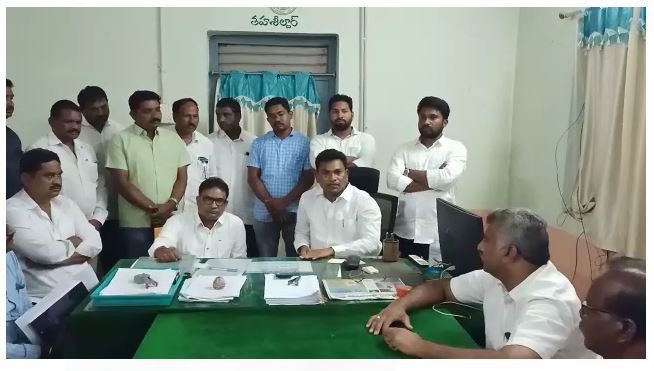 ఫైల్ ఫొటో: తహశీల్దార్ చంద్రశేఖర్ రెడ్డి పక్కన కూర్చోగా, అతని కుర్చీలో ఎమ్మెల్యే రేగా కాంతారావు కూర్చున్న దృశ్యం