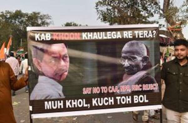 మరో ఫొటోలోని అక్షరాలను గమనించండి. ‘మీ రక్తం ఎప్పుడు మరుగుతుంది..సీఏఏ, ఎన్నార్సీ, ఎన్పీఆర్ లకు వ్యతిరేకమని చెప్పు..నోరు తెరువు..సమాధానం చెప్పు’ అనేది మరో ఫ్లెక్సీలోని అక్షరాల సారాంశం. ఈ ఫ్లెక్సీలో కేసీఆర్, మహాత్మాగాంధీ ఫొటోలను ఉపయోగించడం విశేషం.
