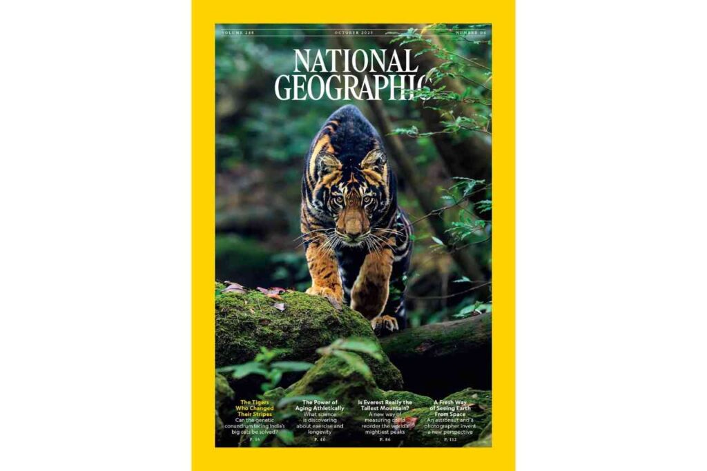 ప్రతిష్టాత్మక నేషనల్ జియోగ్రఫిక్ మ్యాగజైన్ కవర్ పేజీ చిత్రంగా ఒడిషా దట్టమైన అడవుల్లో కనిపించే అరుదైన బ్లాక్ టైగర్ అలంకరించింది. సాధారణ రాయల్ బెంగాల్ టైగర్ జాతిలో జన్యులోపాల వల్ల ఇలాంటి నల్లని పులులు జన్మిస్తాయి. నేషనల్ జియోగ్రఫిక్ అన్వేషకుడు ప్రసేన్ జిత్ యాదవ్ అత్యంత క్లిష్టమైన పరిస్థితులను ఎదుర్కొని ఈ ఫోటోను తీయగలిగారు.
