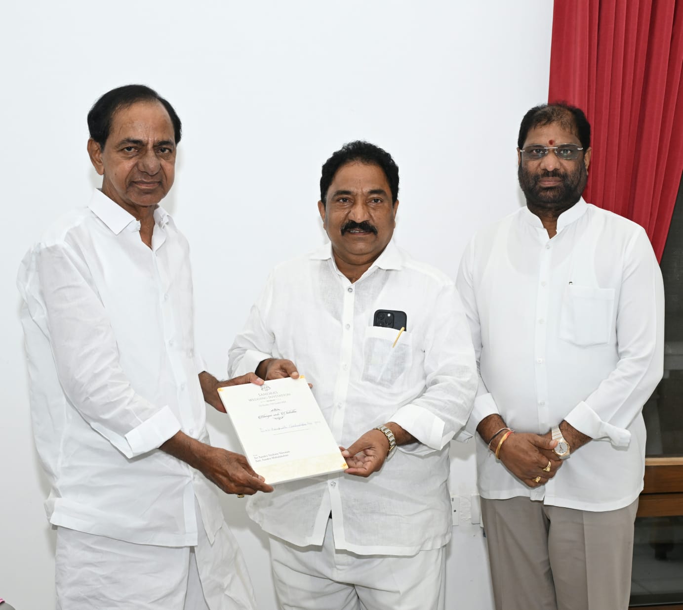 ఇందులో భాగంగానే సండ్ర బీఆర్ఎస్ పార్లమెంటరీ పార్టీ డిప్యూటీ లీడర్, రాజ్యసభ సభ్యుడు వద్దిరాజు రవిచంద్రతో కలిసి శుక్రవారం సాయంత్రం ఎర్రవెల్లిలోని వ్యవసాయ క్షేత్రంలో కేసీఆర్ ను కలిసి వివాహ మహోత్సవ ఆహ్వాన పత్రికను అందజేశారు. సండ్ర కుమారుడు భార్గవ్ పెళ్లి చిద్విత సాయితో అక్టోబర్ 13వతేదీ ఆదివారం రాత్రి హైదరాబాద్ శ్రీనగర్ కాలనీలోని శ్రీవేంకటేశ్వర స్వామి కళ్యాణ మండపంలో జరుగనుంది.