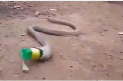 ఇదిగో ఈ పామును చూడండి. ఎలుకగా భావించిందో, పందికొక్కే అనుకుందో గాని ప్లాస్టిక్ బాటిల్ ను చటుక్కున మింగేసింది. కాసేపయ్యాక గాని దానికి తెలియనట్టుంది.. తాను మింగింది తన ఆహారపు ప్రాణి కాదని. పొట్ట ఉబ్బడంతో చాలా సేపు అవస్థలు పడిన పాము ఎలాగోలా తాను తిన్న ప్లాస్టిక్ బాటిల్ ను కక్కడానికి ప్రయత్నించింది. అనేక దఫాలు ప్రయత్నించాక గ్రీన్ కలర్ ప్లాస్టిక్ బాటిల్ పాము కడుపులోంచి బయటకు వచ్చింది.