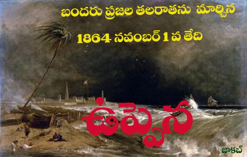 సరిగ్గా 156 సంవత్సరాల కిందటి నాటి బందరు ఉప్పెన గురించి మనలో చాలా మందికి తెలియదు. రక్తాక్షి నామ సంవత్సరం 1864 నవంబర్ 1 వ తేదీన బందరులో సముద్ర కెరటాలు 13 అడుగుల ఎత్తున ఎగసిపడి, 780 చదరపు మైళ్ళ పరిధిలో ఆ ఉప్పెన ప్రాణ, ఆస్తి తీవ్ర నష్టం కల్గించింది. నాడు బందరు పట్టణంలో 65 వేల మంది జనాభా ఉండగా, అందులో 30 వేల మంది తమకేం జరుగుతుందో తెలిసేలోపు ఆ కాళరాత్రి జలసమాధి అయ్యారు. సముద్రం తీరాన్ని దాటి, 17 మైళ్ళు ఊళ్ళపై చొచ్చుకొచ్చి, జనావాసాలని ముంచివేసింది. నేటి కాలేఖాన్ పేట ప్రాంతంలోని శివగంగ బ్రాహ్మణ అగ్రహారంలోని 700 మంది ప్రజలు నివసించేవారని, ఉప్పెన అనంతరం 630 మంది సముద్రపు రాకాసి అలలలో కొట్టుకుపోయి కేవలం 70 మంది మాత్రమే అక్కడ మిగిలారని చరిత్రలో లిఖితమైంది.
