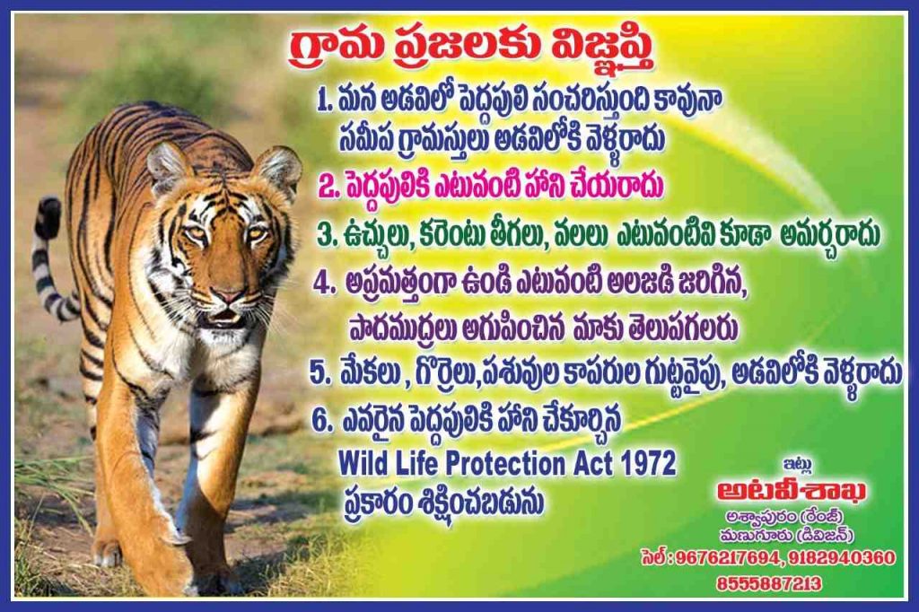 మానవ రక్తం రుచి మరిగిన పులి తెలంగాణాలోని అటవీ ప్రాంతాల ప్రజలను బెంబేలెత్తిస్తున్న సంగతి తెలిసిందే. కుమ్రం భీం ఆసిఫాబాద్ జిల్లాలో పులి ఇప్పటికే ఇద్దరిని పొట్టనబెట్టుకుంది. గడచిన పదిరోజుల వ్యవధిలోనే పులి దాడికి ఇద్దరు బలయ్యారు. ఫలితంగా ఆసిఫాబాద్ నుంచి మహబూబాబాద్ అడవుల వరకు స్థానిక అటవీ ప్రాంతాల ప్రజలు తీవ్ర భయాందోళన చెందుతున్నారు. ఈ నేపథ్యంలోనే భద్రాద్రి కొత్తగూడెం జిల్లా అటవీ శాఖ అధికారులు ఓ ప్రకటన తయారు చేసి సోషల్ మీడియాలో తిప్పుతున్నారు. పులిని పట్టుకునేందుకు తీసుకుంటున్న చర్యలేమిటో చెప్పకుండా, ప్రజలను హెచ్చరిస్తూ తయారు చేసిన ఆ ప్రకటన కథా కమామీషు ఏమిటో దిగువన మీరూ చదివేయండి మరి.