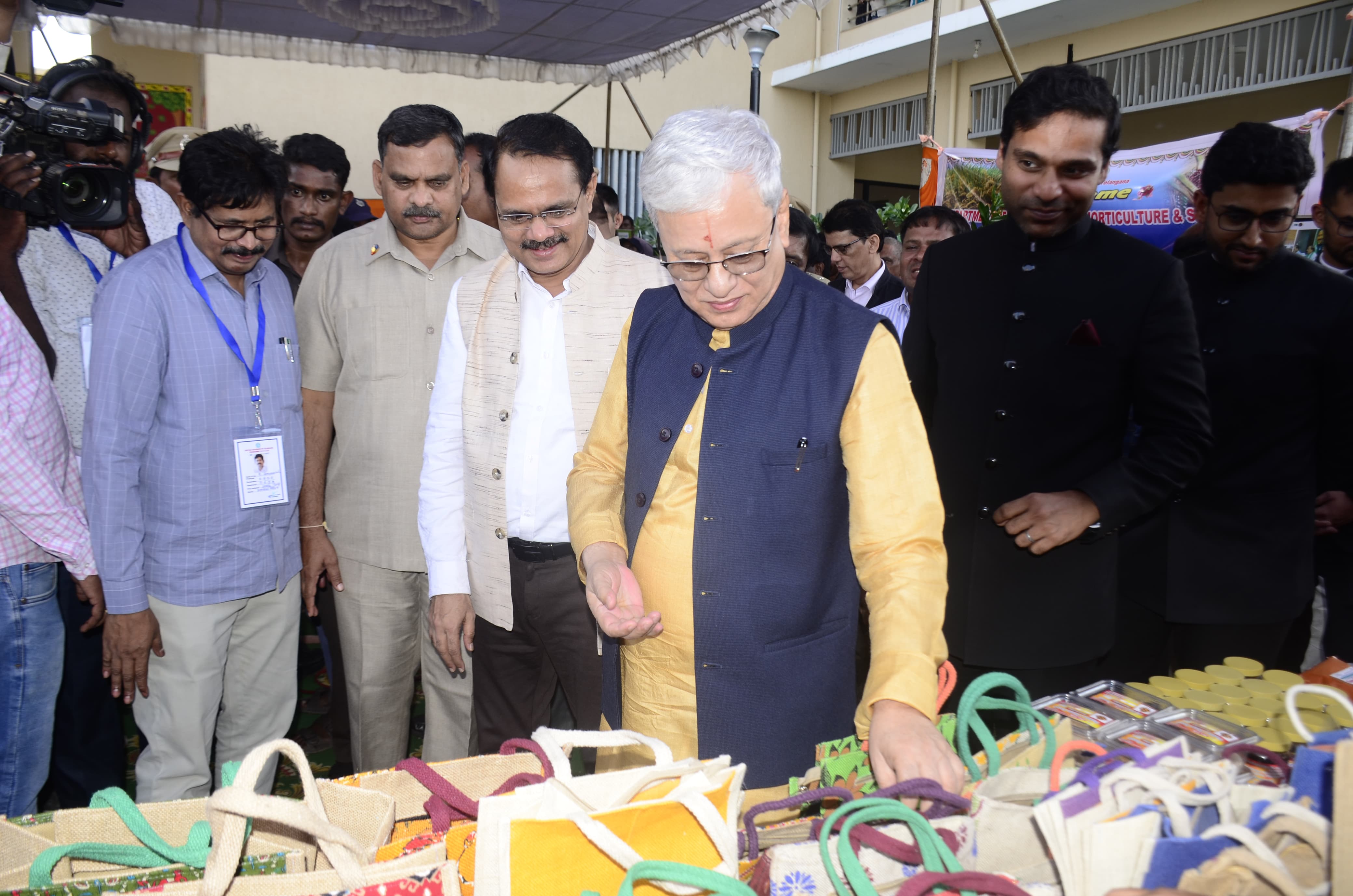 వ్యవసాయ శాఖ ద్వారా ఏర్పాటు చేసిన స్టాల్ లో పంట రుణమాఫీ, డ్రం సీడర్ పద్ధతిలో వరి సాగు, సేంద్రీయ వ్యవసాయం, హెల్త్ బెనిఫిట్స్ ఆఫ్ మిల్లెట్స్, ఆయిల్ పామ్ మొక్కల పెంపకం, రైతులకు కలిగే ప్రయోజనాలు తెలుపుతూ ప్రదర్శించిన వాటిని గవర్నర్ పరిశీలించి అభినందించారు.