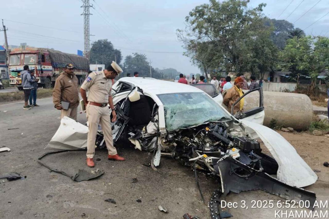 సత్తుపల్లి: ఖమ్మం జిల్లా సత్తుపల్లి శివారులో బుధవారం ఉదయం జరిగిన ఘోర రోడ్డు ప్రమాదంలో ముగ్గురు యువకులు దుర్మరణం చెందారు. ఇదే ఘటనలో మరో ఇద్దరు తీవ్రంగా గాయపడ్డారు. వీఎం బంజర వైపు నుంచి సత్తుపల్లి వైపు ప్రయాణిస్తున్న TG 04 A 4744 టాటా ఆల్ట్రోజ్ కారు కిష్టారం-అంబేడ్కర్ కాలనీ వద్ద డివైడర్ ను ఢీకొట్టడంతో ఈ దుర్ఘటన చోటు చేసుకుంది. ఫలితంగా కారులో ప్రయాణిస్తున్న ఐదుగురిలో ముగ్గురు అక్కడిక్కడే ప్రాణాలు కోల్పోయారు.
