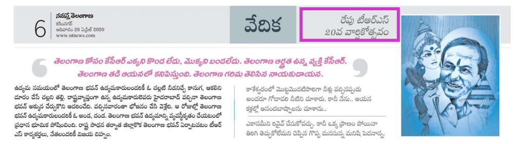 కానీ ఏప్రిల్ 27వ తేదీన టీఆర్ఎస్ పుట్టిన రోజును పార్టీ శ్రేణులు, అభిమానులు, తెలంగాణా ప్రజలు ఏ ప్రాతిపదికన జరుపుకోవాలి? ఇదీ ప్రశ్న. అదేం ప్రశ్న అంటే… ఓ సందేహం. తెలంగాణా మాండలికంలో చెప్పాలంటే ఒకానొక తికమక. ఎందుకంటే కొందరు నేతలు పార్టీ ద్విదశాబ్ధి వేడుకలు అంటున్నారు. మరికొందరు ఇరవై ఏళ్ల క్రితం పార్టీ పుట్టిందంటున్నారు. ఎంపీ జోగినపల్లి సంతోష్ కుమార్ రాసిన ప్రత్యేక వ్యాసాన్ని నమస్తే తెలంగాణా పత్రిక ప్రచురించింది. వేదిక కాలమ్ కింద పబ్లిష్ అయిన ఈ వ్యాసంలో ‘రేపు టీఆర్ఎస్ 20వ వార్షికోత్సవం’ అంటూ పత్రిక ఉటంకించడం గమనార్హం. మరోవైపు టీఆర్ఎస్ ఆవిర్బవించి రెండు దశాబ్ధాలు పూర్తయిందని పార్టీ అభిమానులు సోషల్ మీడియాలో తమ తమ సంతోషాన్ని పంచుకుంటున్నారు.