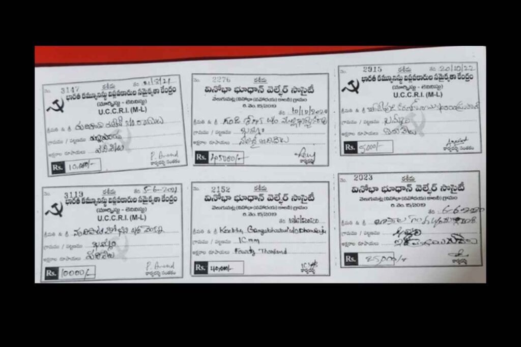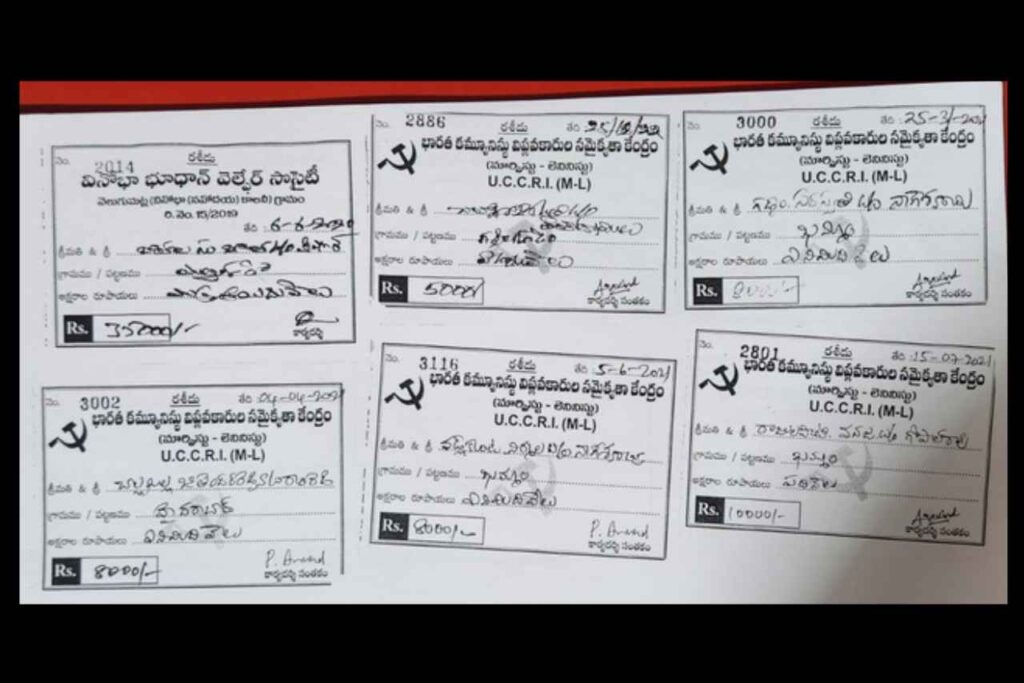 వెలుగుమట్లలో ఇండ్లు నిర్మించుకున్న పేదల నుంచి యూసీసీఆర్ఐ (ఎంఎల్) పార్టీ నాయకులు చేసిన వసూళ్లకు ఆధారాలు కూడా ఉన్నాయి. మూడు కోట్ల వరకు పేదల నుంచి వసూళ్లు చేశారని పోలీసు శాఖ చెబుతుండగా, మొత్తం రూ. 20.00 కోట్ల వరకు ఈ వసూళ్ల సొమ్ము ఉంటుందని అదే పార్టీకి చెందిన మాజీ నాయకుడు గుండా సత్యనారాయణరెడ్డి ఆరోపణ. భారత కమ్యూనిస్టు విప్లవకారుల సమైక్యతా కేంద్రం, వినోభా భూదాన్ వెల్ఫేర్ సొసైటీ పేరుతో వసూళ్లు సాగాయి. రూ. 5 వేల నుంచి రూ. 40 వేల వరకు వసూళ్లు చేసినట్లు లభ్యమైన రశీదు ప్రతులే బహిర్గతం చేస్తున్నాయి. గడచిన ఎనిమిదేళ్ల కాలంలో ఈ వసూళ్ల మొత్తం రూ. 5.00 లక్షల వరకు చేరుకుందనే ఆరోపణలూ ఉన్నాయి. ఆనవాళ్లుగా చూపిన దిగువన గల రశీదు నెంబర్ల ప్రకారం వసూళ్లు వేల మంది నుంచి చేసినట్లు స్పష్టమవుతోంది.