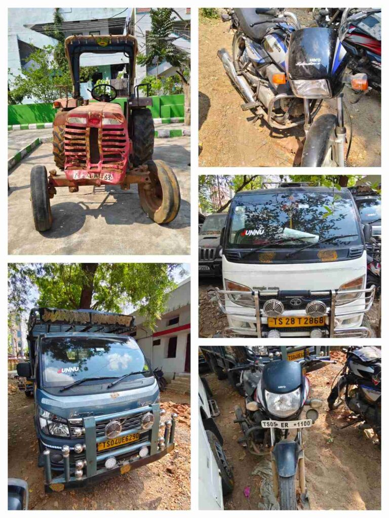 పోలీసులు సీజ్ చేసిన వెలుగుమట్ల కేసుల్లోని నిందితుల వాహనాలు